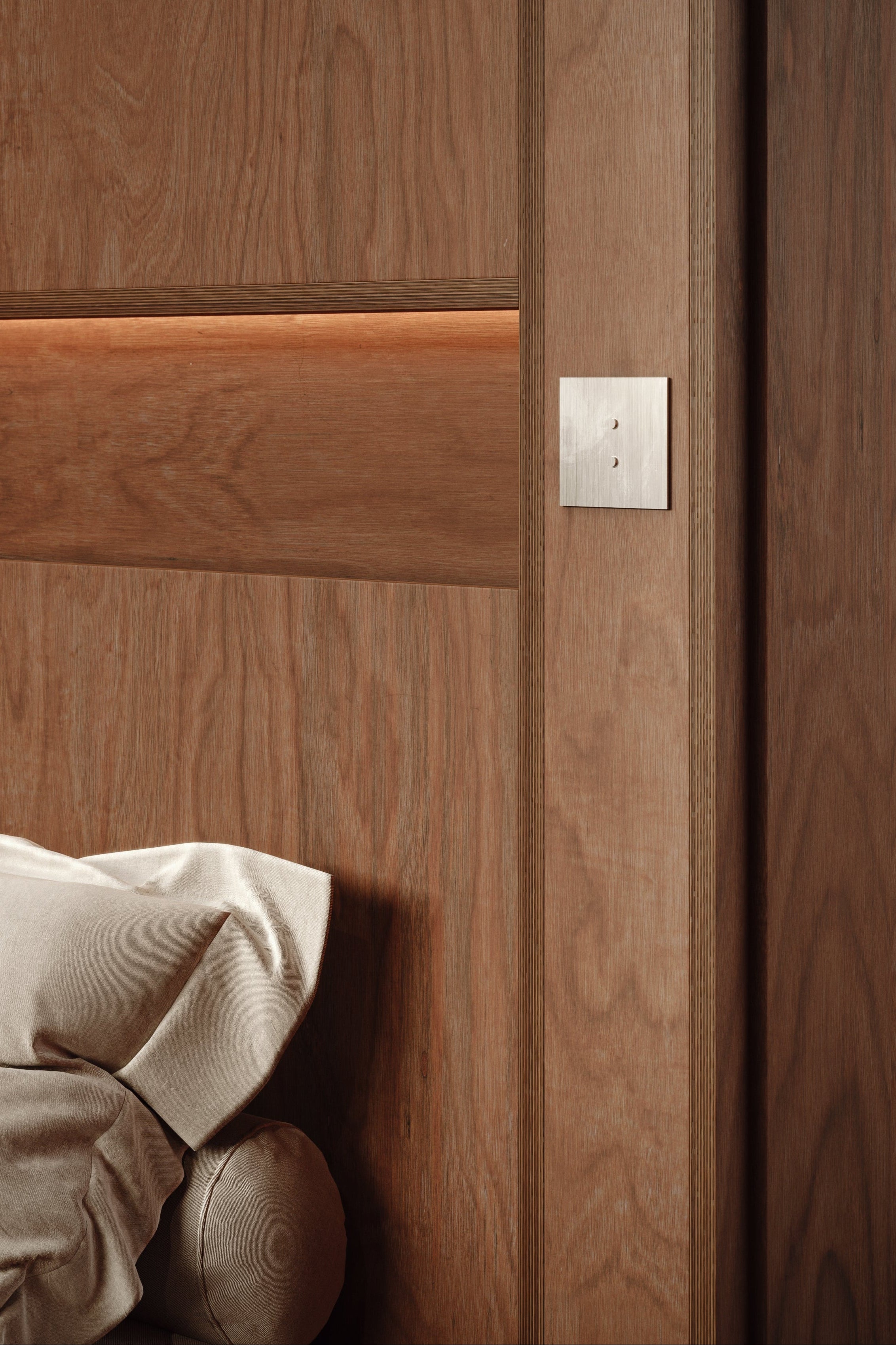 All Sumum switches start from a solid 4 mm brass plate and are finished by hand in a curated palette of warm and cool metal tones – from brushed brass and medium bronze to dark bronze, black bronze, antique bronze, brushed nickel and deep canon de fusil, as well as classic black and white.